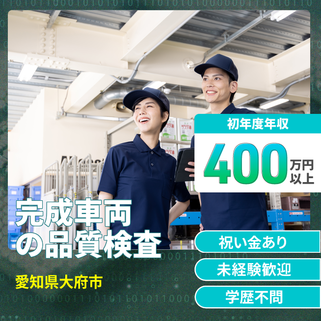 給与詳細 年収例 4,050,000円 日給例 12,335円 勤務地 愛知県大府市 仕事内容 完成した自動車の検査業務
