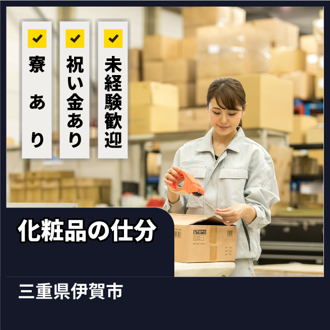 化粧品工場での検品・仕分け・梱包中心のピッキング業務。空調完備。