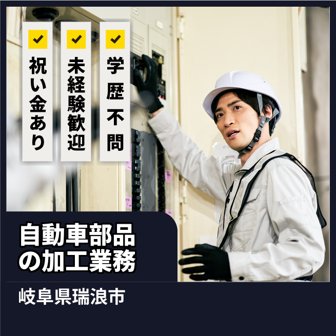 給与詳細 月収例 213,000円 日給例 10,650円 勤務地 岐阜県瑞浪市 仕事内容 自動車部品製造のマシンオペレーター