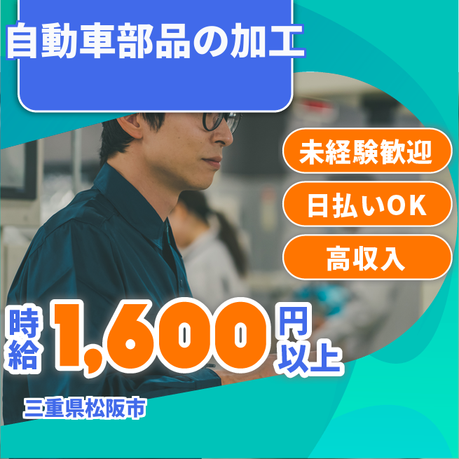 給与詳細 月収例 325,715円 時給例 1,650円 勤務地 三重県松阪市 仕事内容 ◎自動車車体部品(ピラー)の加工業務