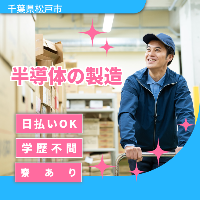 給与詳細 月収例 259,797円 日給例 11,200円 勤務地 千葉県松戸市 仕事内容 ■アナログ半導体専業メーカーでの製造業務