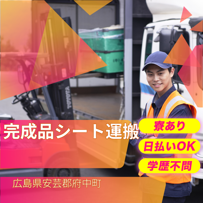 給与詳細 月収例 283,724円 日給例 11,200円 勤務地 広島県安芸郡府中町 仕事内容 自動車シート完成品の荷降ろし等