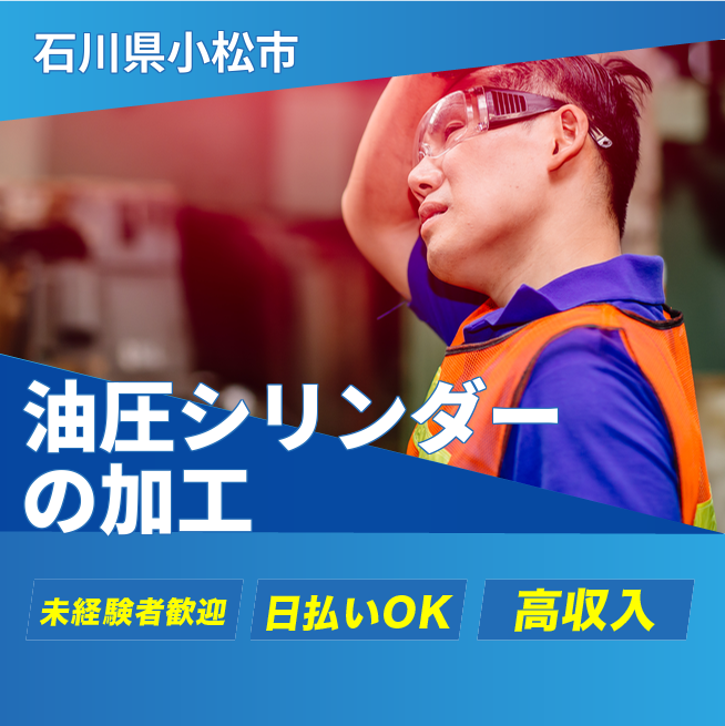給与詳細 月収例 320,086円 日給例 11,200円 勤務地 石川県小松市 仕事内容 油圧シリンダーの機械加工、NC旋盤操作、メッキ処理等