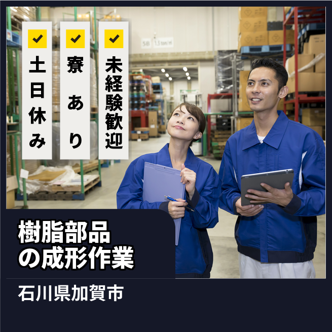 給与詳細 月収例 321,897円 時給例 1,625円 勤務地 石川県加賀市 仕事内容 自動車用の樹脂部品の製造・検査・付帯作業