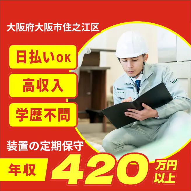 給与詳細 月収例 354,616円 時給例 1,626円 勤務地 大阪府大阪市住之江区 仕事内容 【概要】