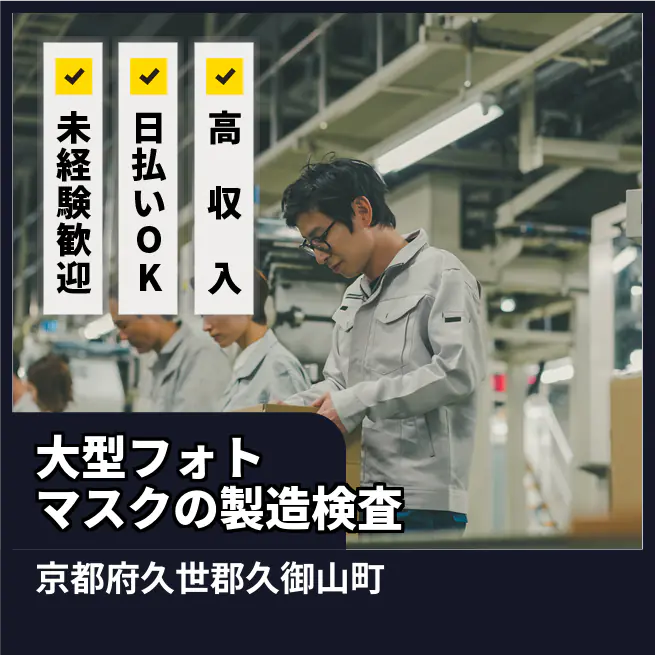 給与詳細 月収例 322,950円 日給例 12,000円 勤務地 京都府久世郡久御山町 仕事内容 【業務内容】