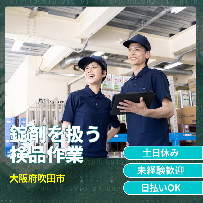 錠剤の目視検査と資材の供給を行うシンプルなお仕事です。