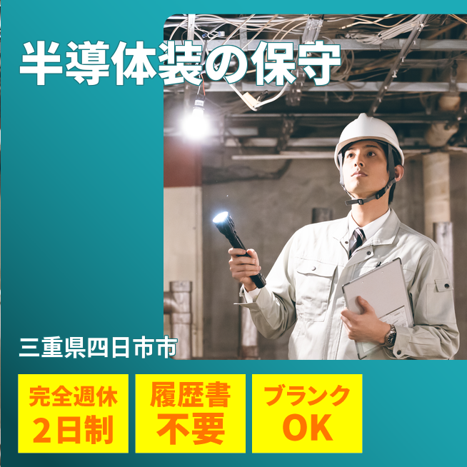 給与詳細 月収例 296,000円 日給例 14,800円 勤務地 三重県四日市市 仕事内容 某大手半導体製造会社での機械メンテナンス、エンジニアリングのサポート業務です。