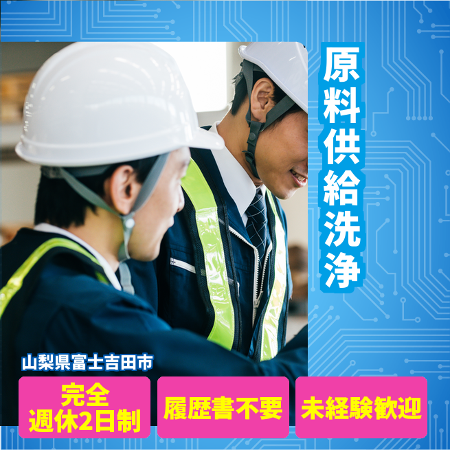 給与詳細 月収例 180,500円 時給例 1,200円 勤務地 山梨県富士吉田市 仕事内容 原料の供給、製造機械部品の洗浄また作業に付随する業務