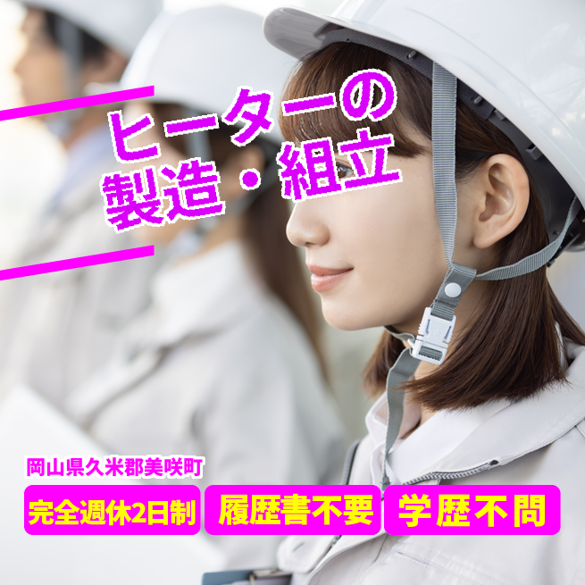 給与詳細 月収例 243,750円 日給例 10,000円 勤務地 岡山県久米郡美咲町 仕事内容 ヒーターの管の検査業務、梱包、運搬業務