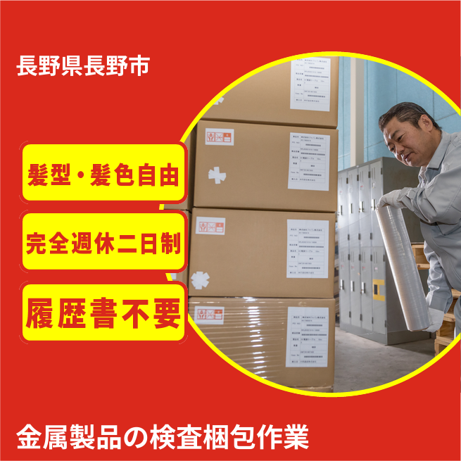 産業機械に使用される金属部品の検品・梱包・出荷作業を行うお仕事です。板金加工された金属製品を紙で丁寧に包み、段ボールへ収納していただきます。扱う製品は小型・軽量のものが中心で、力作業はほとんどありません。コツコツと丁寧に作業することが好きな方に向いています。