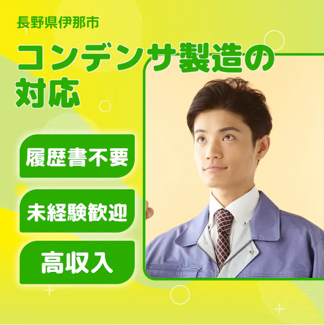 給与例は概算での計算となります。※実際と異なるケースもございます。 交通費 支給あり 応募の流れ 本ページ内<応募する>ボタンより、必要項目をご入力の上、ご応募ください。 勤務地 【勤務地】長野県伊那市- 勤務時間 【勤務地】【勤務時間】