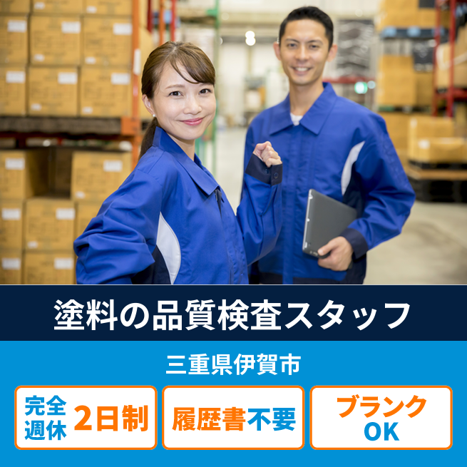 給与詳細 月収例 273,000円 日給例 11,200円 勤務地 三重県伊賀市 仕事内容 塗料の製造業務