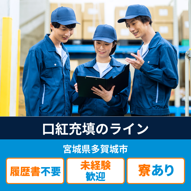 給与詳細 月収例 250,000円 日給例 12,500円 勤務地 宮城県多賀城市 仕事内容 磁気テープ製造工程(組立、検査、包装)の製造、装置操作、物流及びそれらに付随する業務(ミーティング、清掃、帳票作成、保全業務補助等)