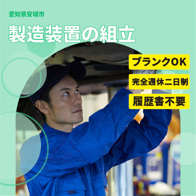 給与詳細 月収例 250,000円 日給例 12,500円 勤務地 愛知県安城市 仕事内容 生産設備の設計・製作