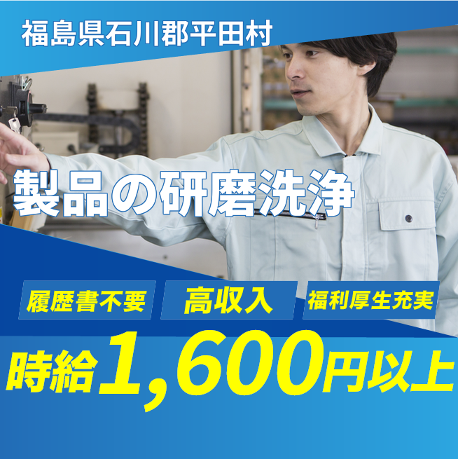 給与詳細 月収例 276,000円 時給例 1,600円 勤務地 福島県石川郡平田村 仕事内容 工場内でエンジン部品の製造を担当します。