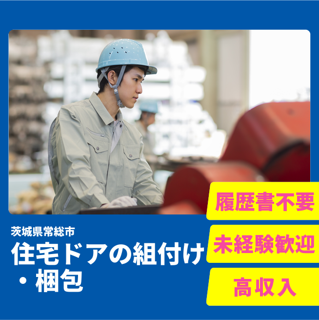 給与詳細 月収例 280,000円 日給例 14,000円 勤務地 茨城県常総市 仕事内容 ≪玄関ドアの製造業務≫