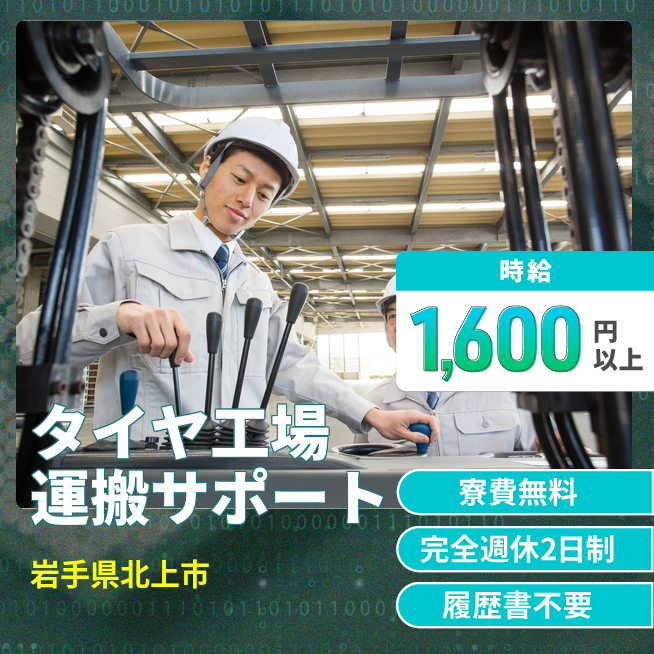 給与詳細 月収例 300,000円 時給例 1,650円 勤務地 岩手県北上市 仕事内容 自動車部品の供給作業をお願いします。ヤリガイあり!スキルアップできる!