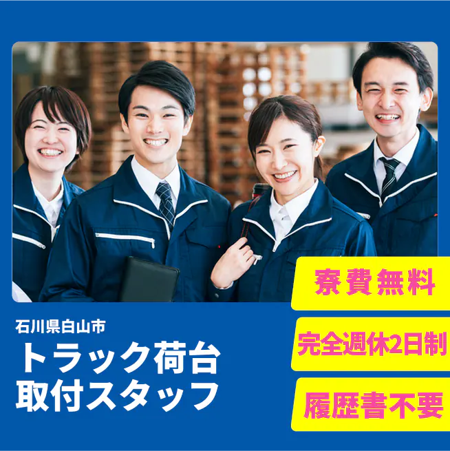 給与詳細 月収例 235,000円 日給例 11,750円 勤務地 石川県白山市 仕事内容 【トラック荷台取付スタッフ】