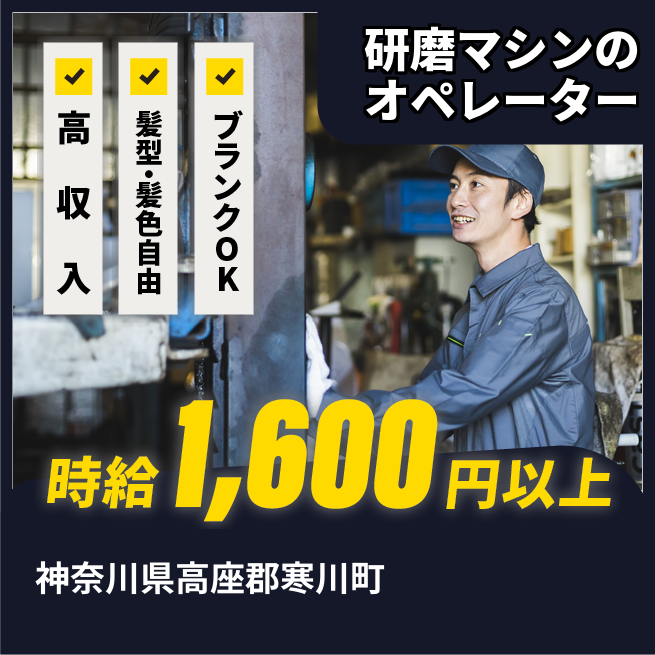 給与詳細 月収例 312,000円 時給例 1,600円 勤務地 神奈川県高座郡寒川町 仕事内容 光学ガラスの研磨・洗浄・運搬・設置・機械オペレーター