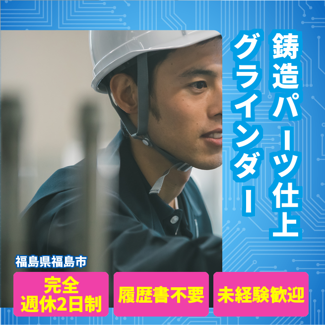 給与詳細 月収例 320,000円 日給例 16,000円 勤務地 福島県福島市 仕事内容 【鋳造パーツ仕上グラインダー】