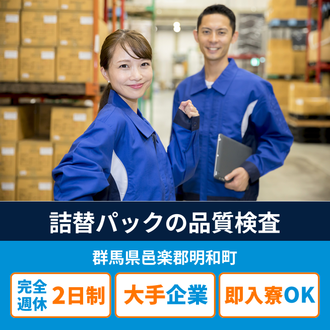 給与詳細 月収例 253,500円 日給例 10,400円 勤務地 群馬県邑楽郡明和町 仕事内容 【業務内容】