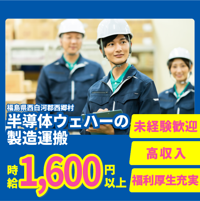 給与詳細 月収例 300,000円 時給例 1,700円 勤務地 福島県西白河郡西郷村 仕事内容 【業務内容】