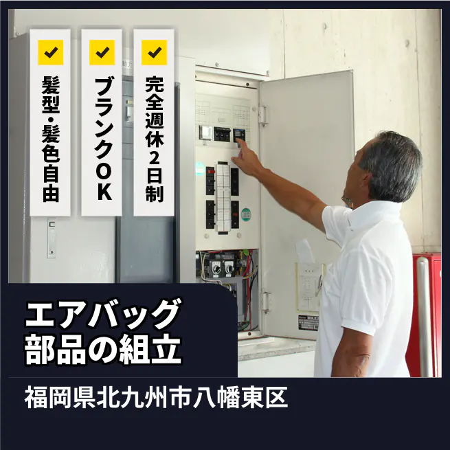 給与詳細 月収例 220,000円 日給例 11,000円 勤務地 福岡県北九州市八幡東区 仕事内容 【業務内容】自動車エアバッグ部品の製造と組立作業