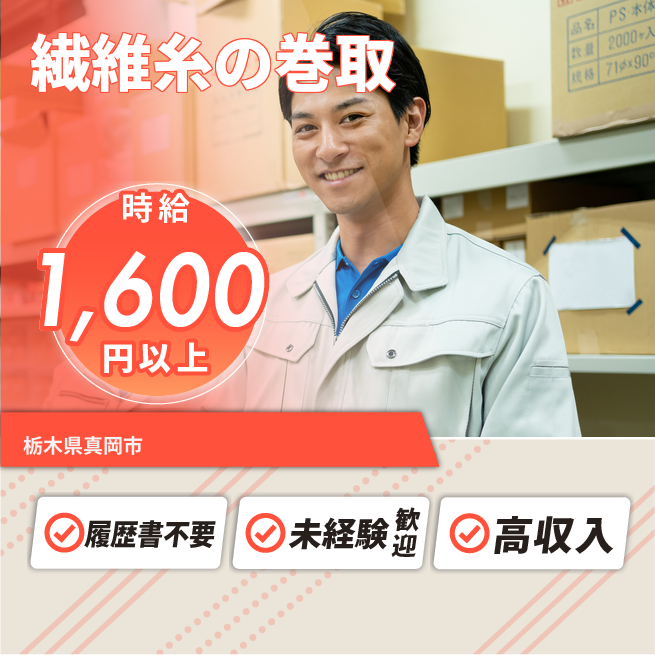 給与詳細 月収例 330,000円 時給例 1,650円 勤務地 栃木県真岡市 仕事内容 繊維糸を巻取る機械の補助、台紙のチェック、巻き取り終わった製品をリフトに移動、繊維糸の巻替え、カット加工機オペレーター