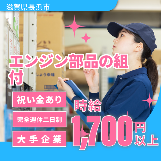 給与詳細 月収例 300,000円 時給例 1,700円 勤務地 滋賀県長浜市 仕事内容 嬉しい高時給♪
