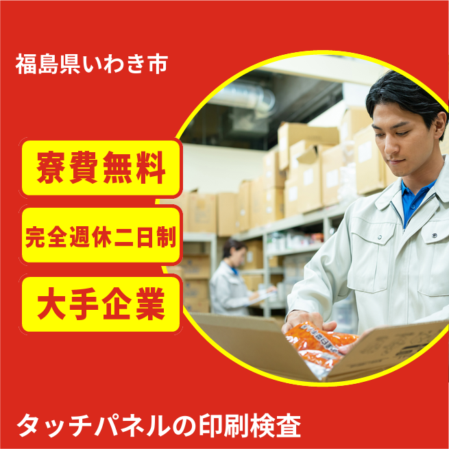 給与詳細 月収例 160,000円 時給例 1,400円 勤務地 福島県いわき市 仕事内容 タッチパネルの印刷・外観検査