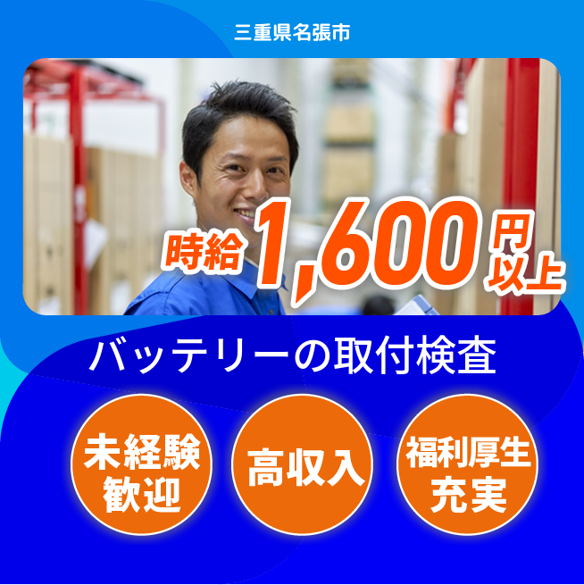 給与詳細 月収例 270,000円 時給例 1,600円 勤務地 三重県名張市 仕事内容 【業務内容】