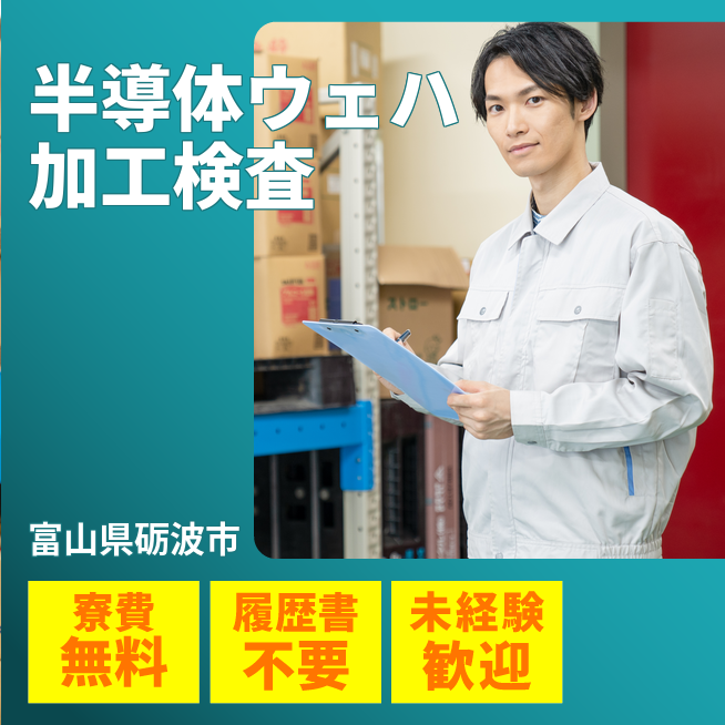 給与詳細 月収例 220,000円 日給例 11,000円 勤務地 富山県砺波市 仕事内容 【半導体ウェハ加工検査】
