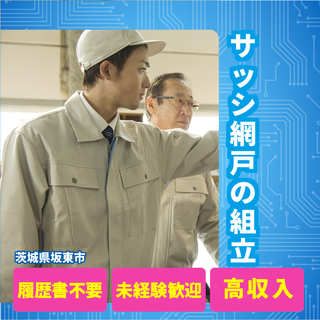 給与詳細 月収例 240,000円 日給例 12,000円 勤務地 茨城県坂東市 仕事内容 ≪窓の製造業務≫