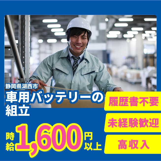 企業 トヨタバッテリー 給与詳細 月収例 300,000円 時給例 1,600円 勤務地 静岡県湖西市 仕事内容 ハイブリッド自動車用電池の製造業務のお仕事です。次の作業をお任せします。(1)ライン作業でのHEV用電池の組立、インパクトレンチなどを用いた組立、検査