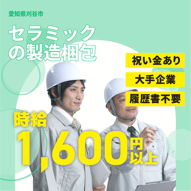 給与詳細 月収例 302,000円 時給例 1,650円 勤務地 愛知県刈谷市 仕事内容 製造及び付随業務