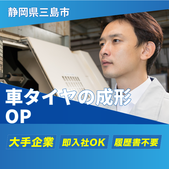 給与詳細 月収例 264,000円 日給例 13,200円 勤務地 静岡県三島市 仕事内容 自動車用の生タイヤを自動機にセットするお仕事です。タイヤ製造工程の中で加硫工程の部署です。タイヤの原形に金型を使って、熱と圧力をかけて、よく目にするタイヤの形に完成させる工程です。