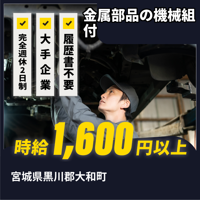 給与例は概算での計算となります。※実際と異なるケースもございます。 交通費 支給あり 応募の流れ 本ページ内<応募する>ボタンより、必要項目をご入力の上、ご応募ください。 勤務地 【勤務地】宮城県黒川郡大和町- 勤務時間 【勤務地】【勤務時間】