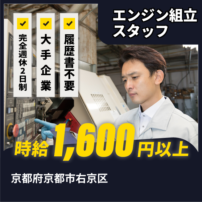 給与詳細 年収例 4,032,000円 月収例 336,000円 勤務地 京都府京都市右京区 仕事内容 自動車用エンジンの組立