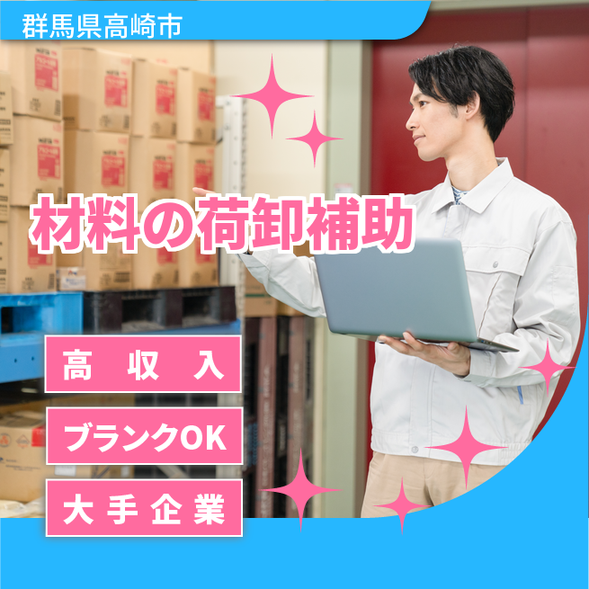 給与詳細 月収例 292,500円 日給例 12,000円 勤務地 群馬県高崎市 仕事内容 電子材料の袋詰め・材料の積荷・簡単なPC入力