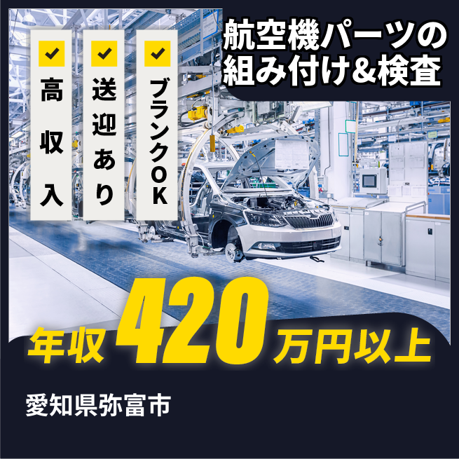 給与詳細 月収例 333,000円 時給例 2,000円 勤務地 愛知県弥富市 仕事内容 《航空機部品の組立・整備・検査のオシゴト》