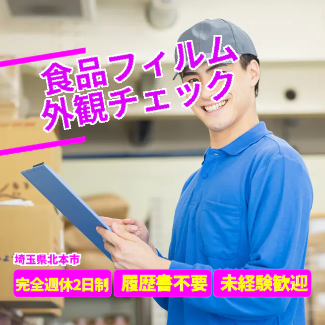 給与詳細 月収例 249,600円 日給例 10,240円 勤務地 埼玉県北本市 仕事内容 【食品フィルム外観チェック】
