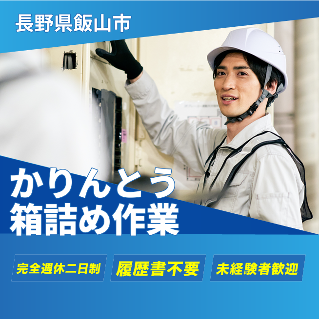 かりんとう製造で、箱詰め・機械操作・段ボール組立を行います。
