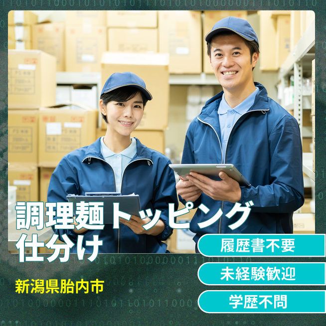 給与詳細 月収例 204,750円 時給例 1,050円 勤務地 新潟県胎内市 仕事内容 【業務内容】