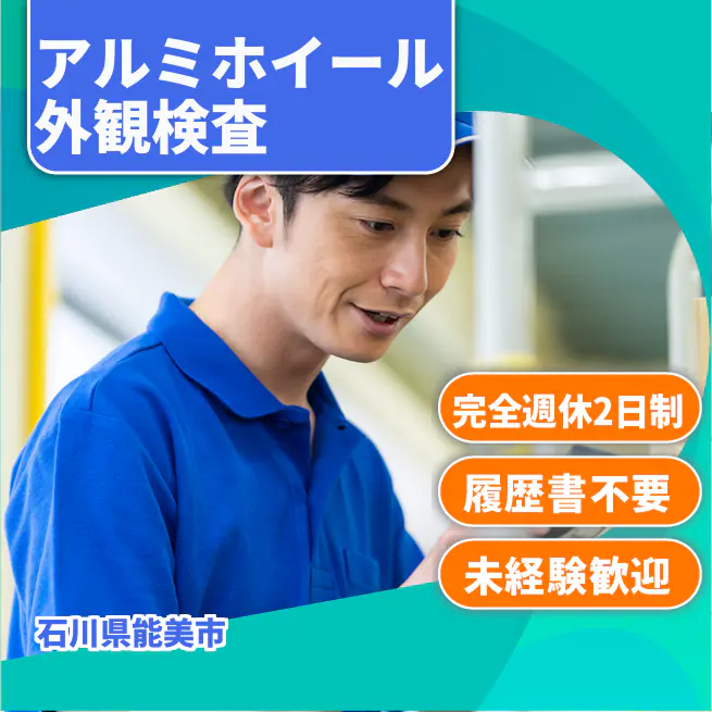 給与詳細 月収例 250,000円 日給例 12,500円 勤務地 石川県能美市 仕事内容 【アルミホイール外観検査】