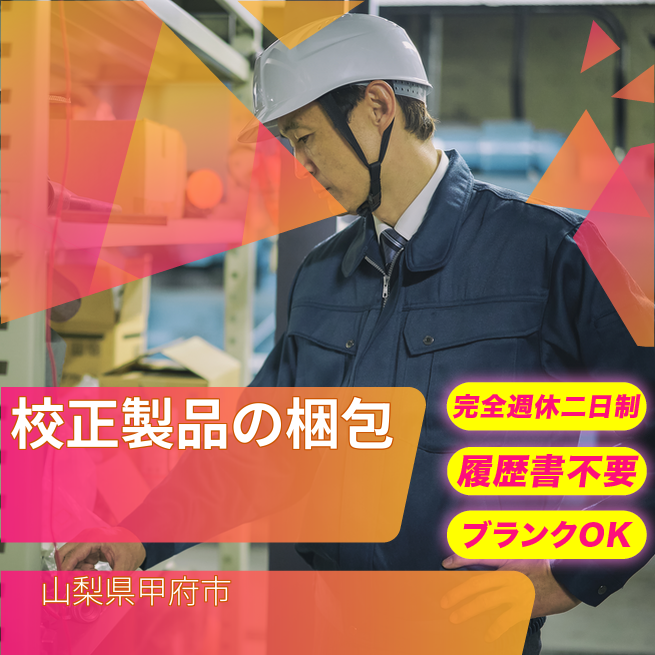給与詳細 月収例 234,000円 時給例 1,200円 勤務地 山梨県甲府市 仕事内容 校正・検査・梱包・調整および付随する作業