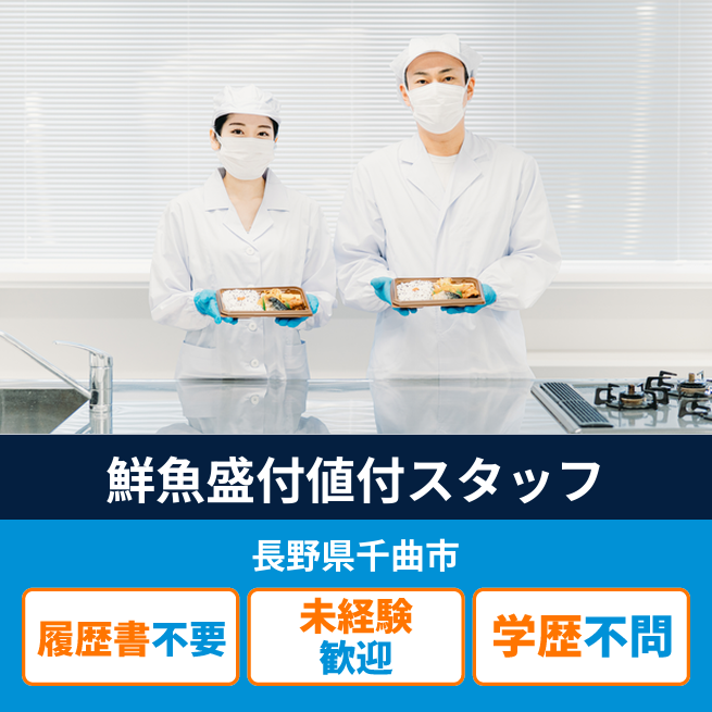 給与詳細 月収例 120,000円 時給例 1,250円 勤務地 長野県千曲市 仕事内容 【鮮魚盛付値付スタッフ】