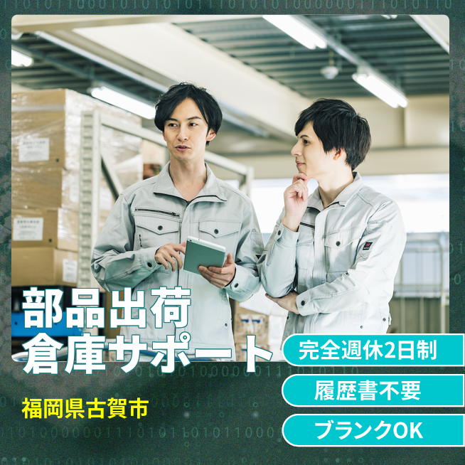 物流倉庫内にて自動車部品の出荷業務(手作業の為、リフトの資格は不要)※ピッキング、ハンディターミナルでの読み込み、パレットへの積み込み