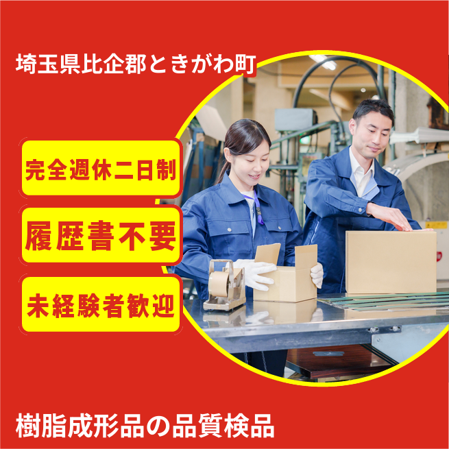 ≪プラスチック製品の製造≫成型機械オペレーターの補助業務や検品、梱包のお仕事をお願いします。土日休みの残業なしでプライベートも充実!