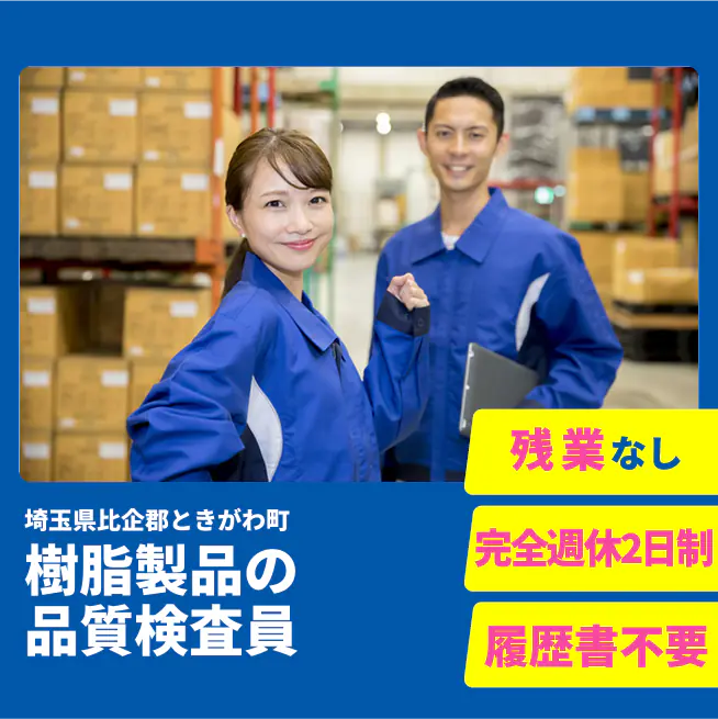 ≪プラスチック製品の製造≫成型機械オペレーターの補助業務や検品、梱包のお仕事をお願いします。土日休みの残業なしでプライベートも充実!